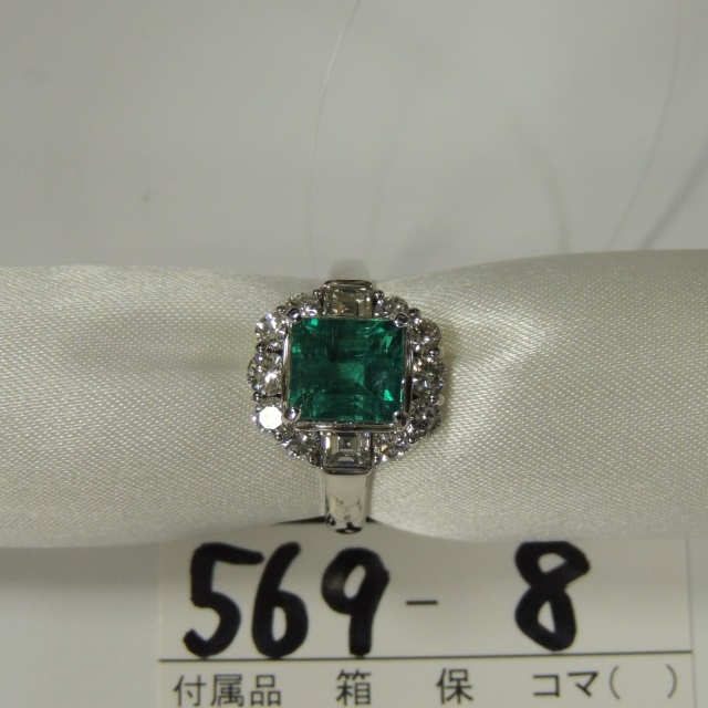 リング エメラルド ダイヤ Pt900 7.30g 石目:2.68 1.10