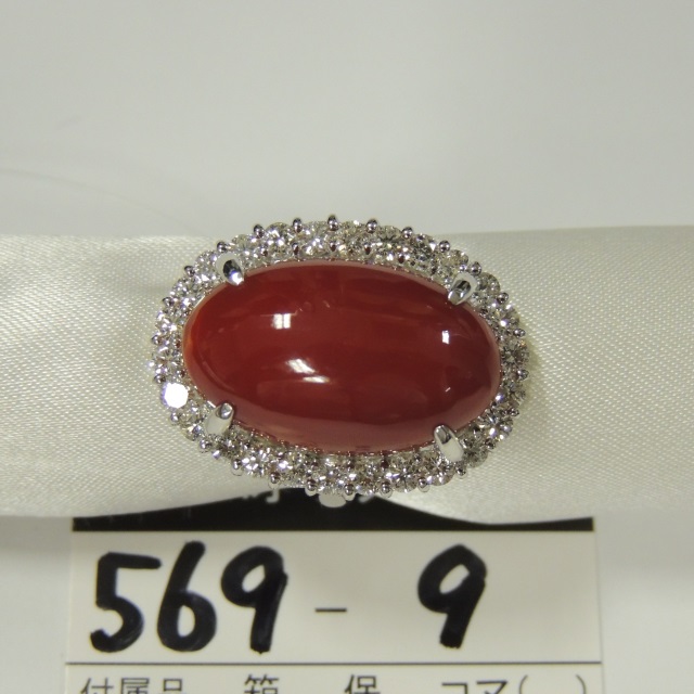 リング サンゴ ダイヤ Pt900 16.00g 石目:16.40 1.43