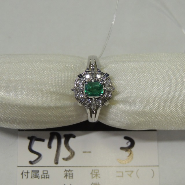 リング エメラルド ダイヤ Pt900 1.70g 中ソ 石目:E0.76 D0.15