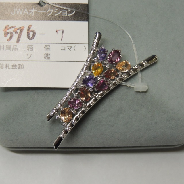 ブローチ ダイヤ マルチストーン K18WG 10.10g 石目:D0.57 6.47