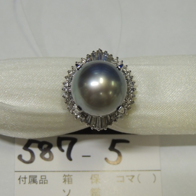 リング ブラックパール ダイヤ Pt900 13.40g 石目:D1.03