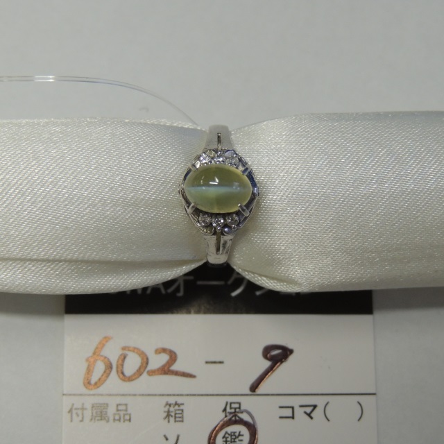 リング クリソベリンキャッツアイ ダイヤ Pt900 4.30g 鑑 石目:2.27 FD0.07