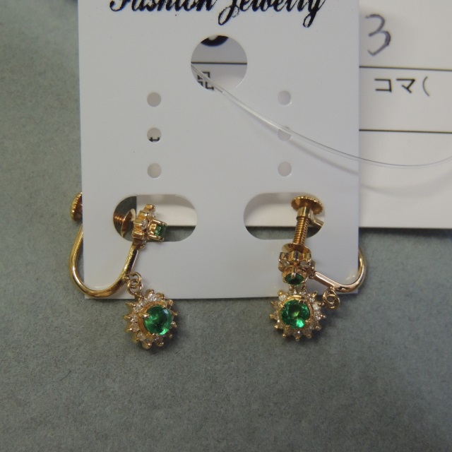 イヤリング エメラルド ダイヤ K18 1.90g 石目:FD0.09x2