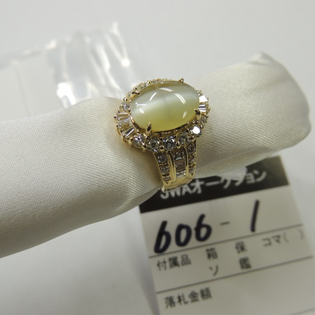 リング クリソベリルキャッツアイ ダイヤ メレ1P取 K18 8.10g ソ 石目:4.443 D1.19