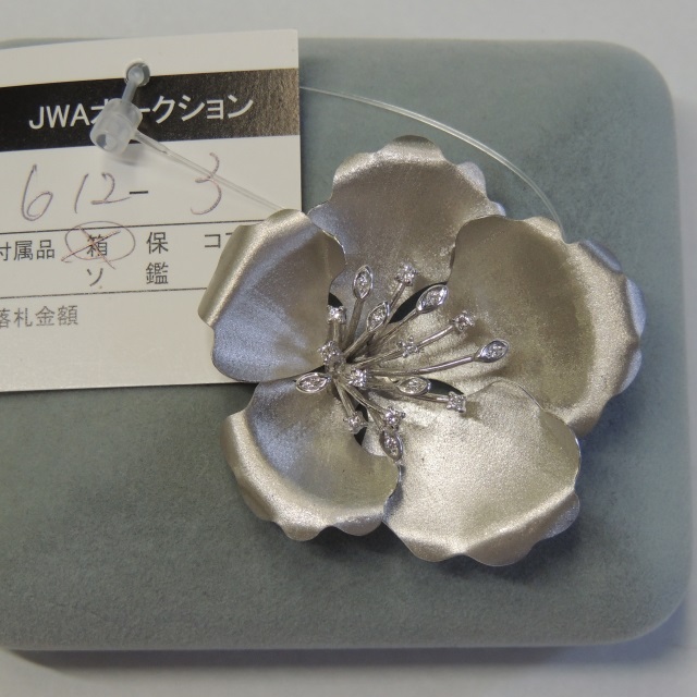 ブローチ ダイヤ 花 K18WG 16.80g 石目:D0.25