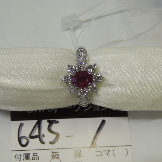 リング ルビー ダイヤ メレ落ち Pt900 5.80g GRJソ 石目:R1.03 D1.11