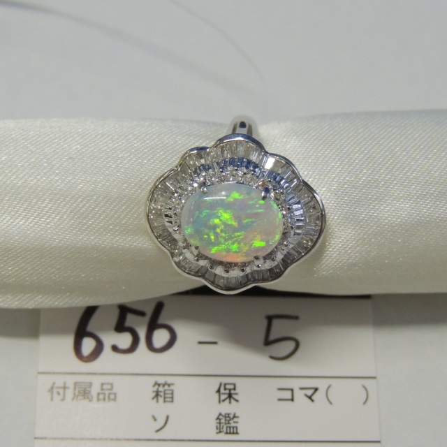 リング オパール ダイヤ Pt900 9.50g 鑑 石目:1.35 0.88