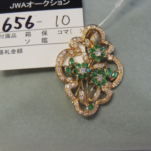 ブローチ エメラルド ダイヤ K18 11.50g 石目:1.37 1.29