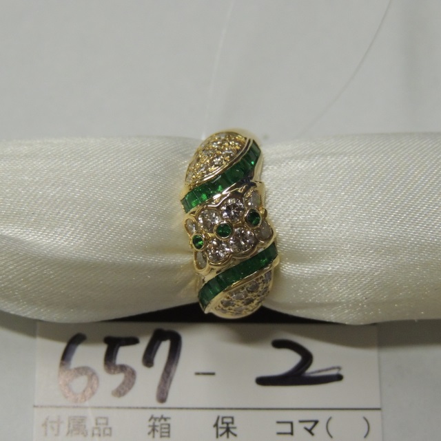 リング エメラルド ダイヤ K18 9.10g 石目:E0.46 D1.12