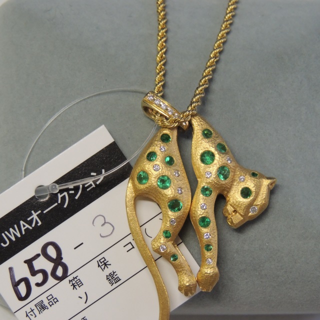 ペン・ネック パンサー エメラルド ダイヤ K18 26.60g 石目:1.11 0.30
