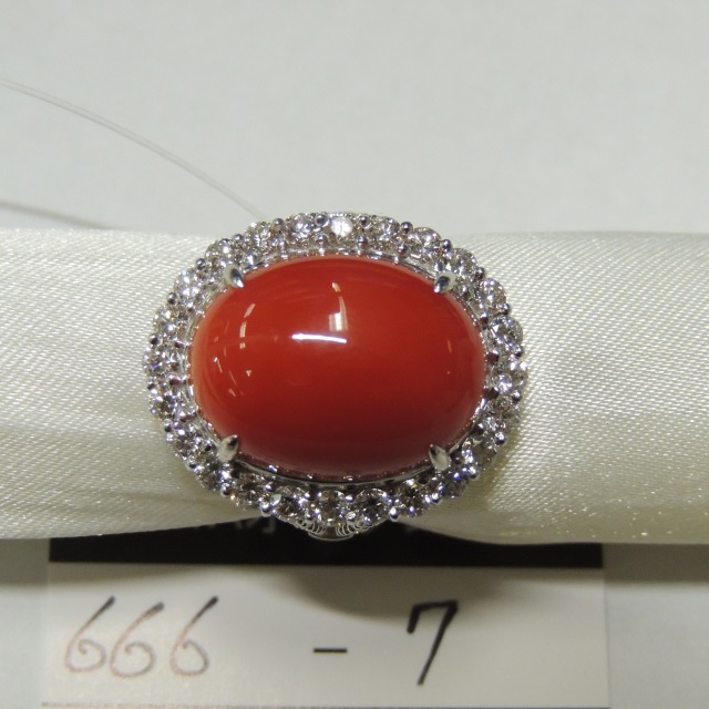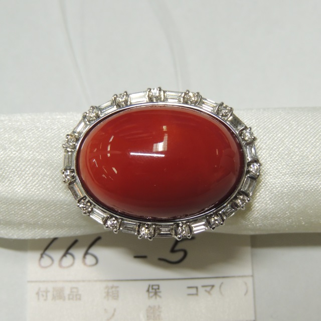 リング サンゴ ダイヤ Pt9000 22.70g 石目:C36.80 D1.00