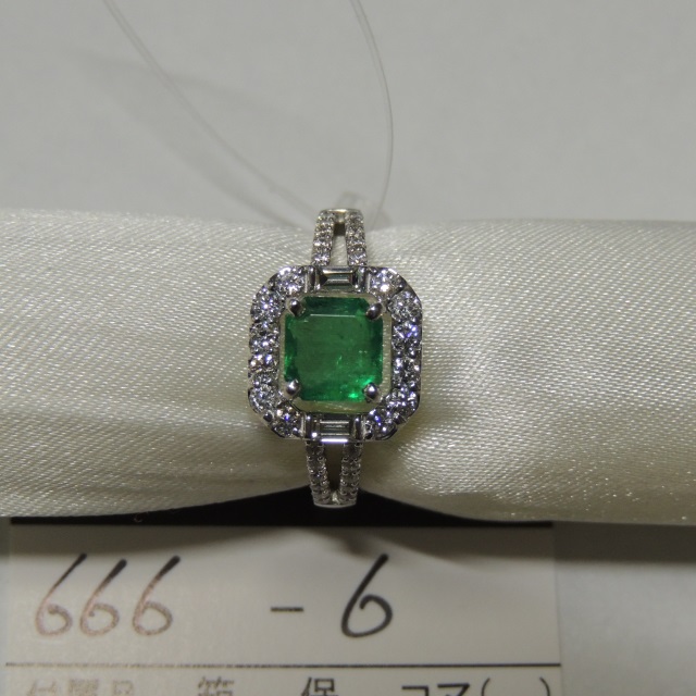 リング エメラルド ダイヤ Pt900 6.20g 石目:E131 D0.65