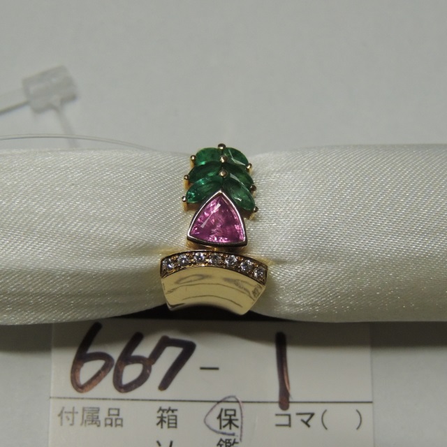 リング エメラルド ピンクサファイア K18YG 8.10g 石目:0.876 0.78