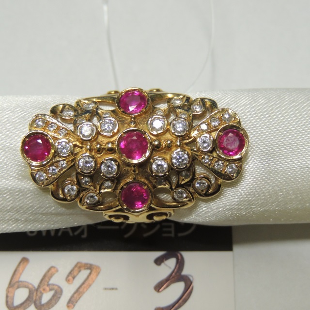 リング ダイヤ ルビー K18/YG 14.90g 石目:1.61 0.35