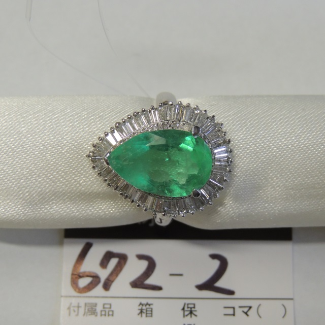 リング エメラルド ダイヤ Pt900 9.20g 鑑 石目:E5.20 D1.35