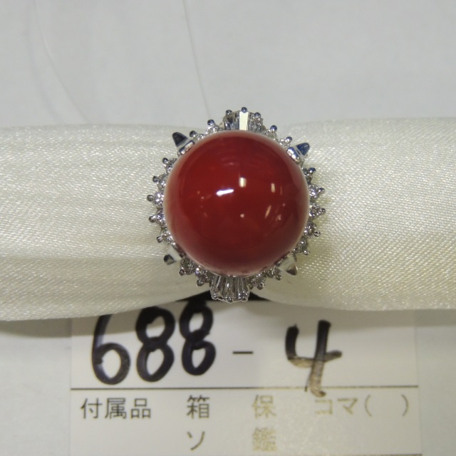 リング サンゴ 14.3mm ダイヤ Pt900 15.00g 石目:0.74
