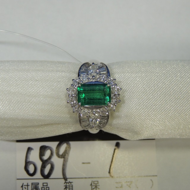 リング エメラルド ダイヤ Pt900 14.80g 石目:2.08 1.57
