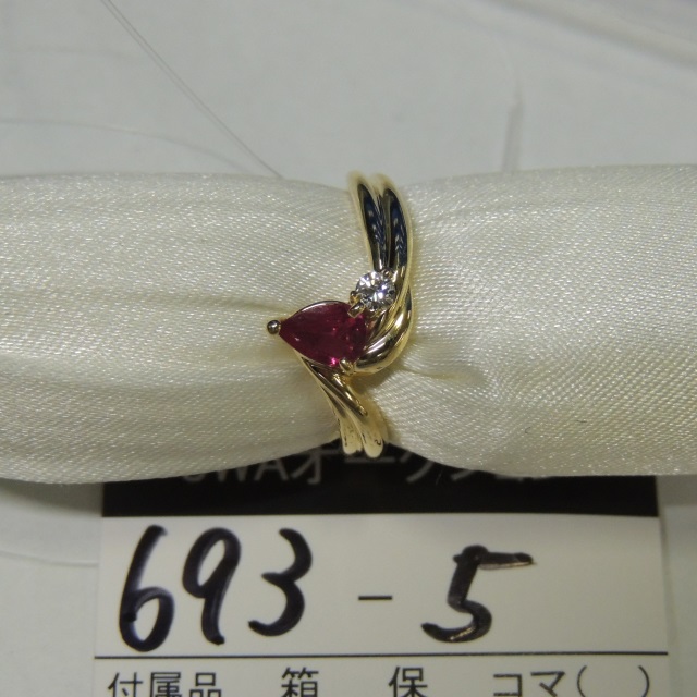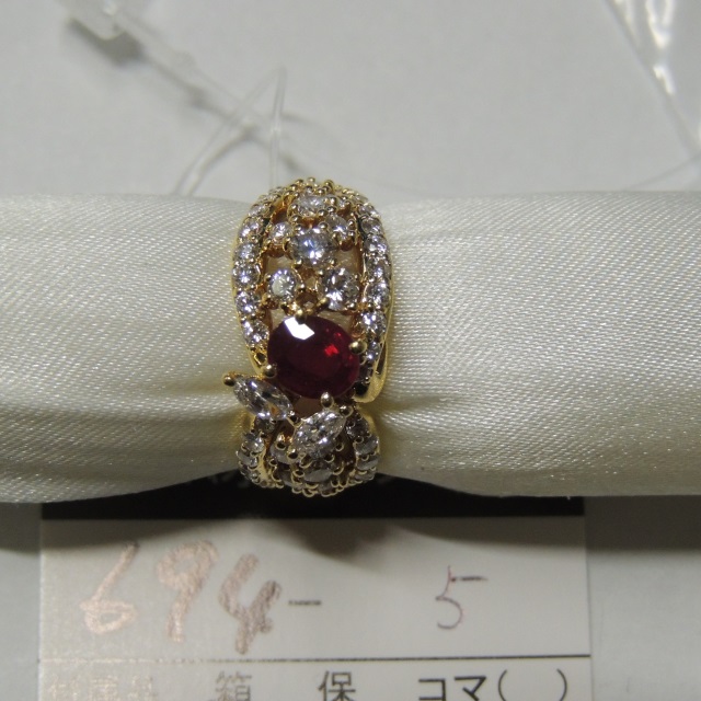 リング ルビー ダイヤ K18 7.40g 中ソ 石目:R0.79 D1.50