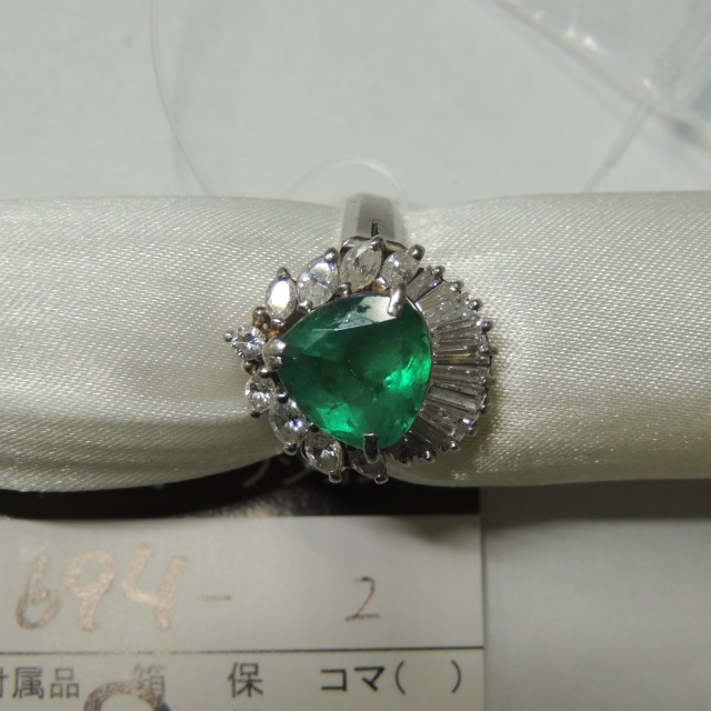 リング エメラルド ダイヤ Pt900 12.20g 中ソ 石目:J3.45 D1.25