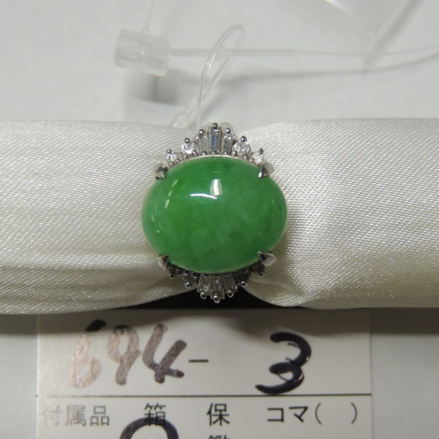 リング ヒスイ ダイヤ Pt900 11.00g 中ソ 石目:J7.652 D0.34