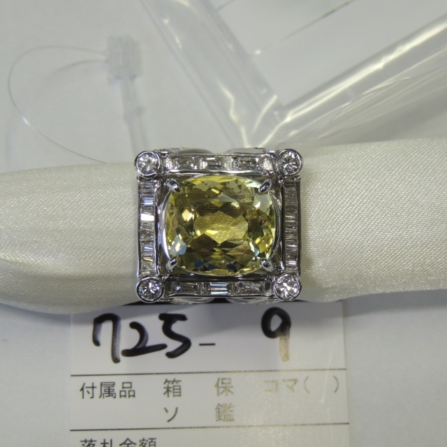 リング イエローベリル ダイヤ Pt900 20.00g 中ソ 石目:11.306 FD2.87