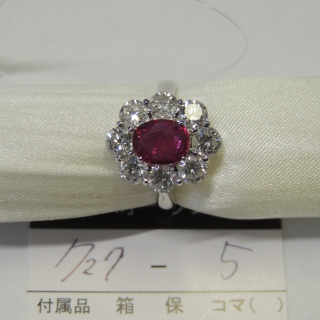 リング ルビー 非加熱 ダイヤ Pt900 8.15g 石目:2.03 2.40