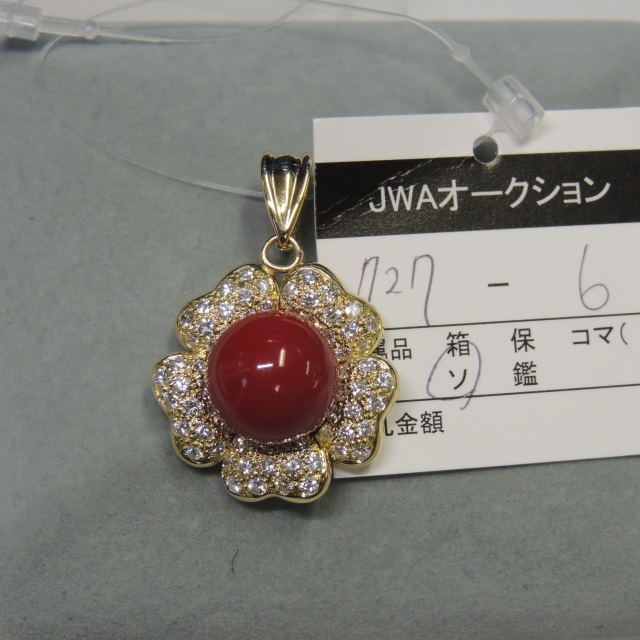 リング サンゴ 14.3mm ダイヤ K18 13.00g GRJソ