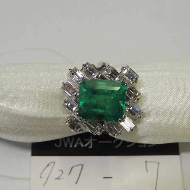 リング エメラルド ダイヤ Pt900 10.50g GRJソ 石目:3.14 0.77