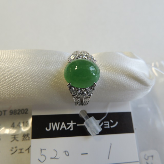 リング ヒスイ ダイヤ Pt900 8.60g 中ソ 石目:J4.413 D0.50