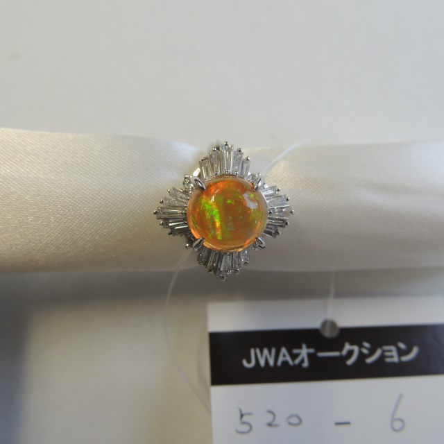 リング ファイヤーオパール ダイヤ Pt900 9.80g 中ソ 石目:O2.50 D0.88