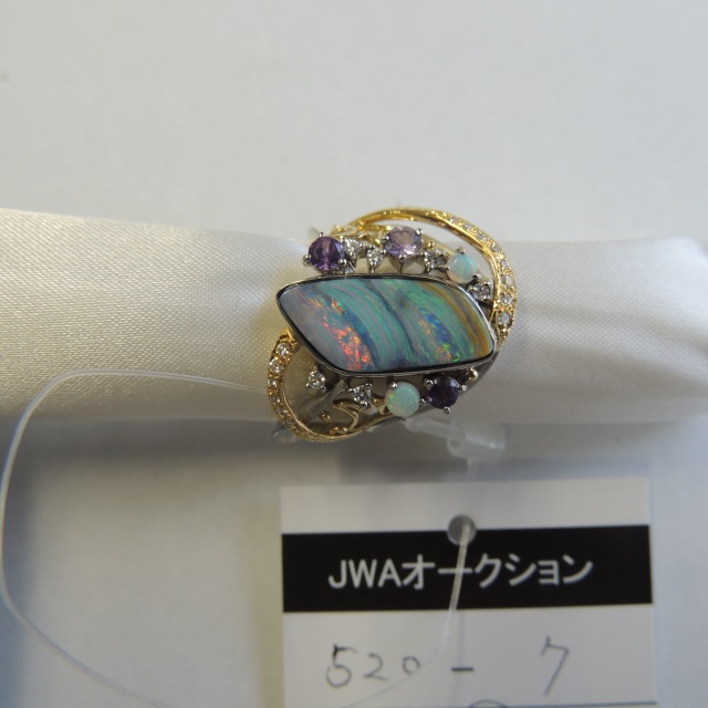 リング ナトリユリ ボルダーオパール K18/Pt900 13.70g 箱 保 石目:O4.48 D0.15 A0.30 O0.15