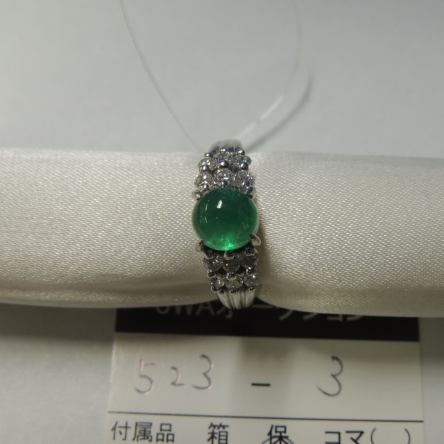 リング エメラルド カボション Pt900 8.30g 中鑑 石目:E1.80 D0.47
