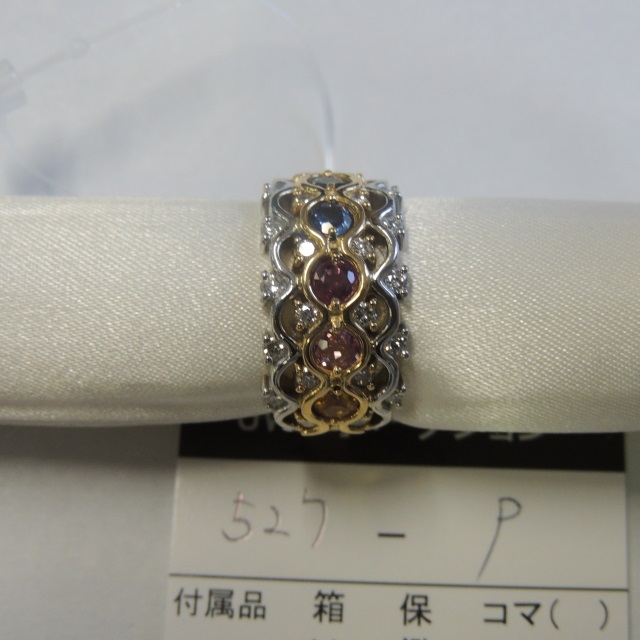 リング マルチサファイア K18/Pt900 11.50g 石目:S1.16 D0.55