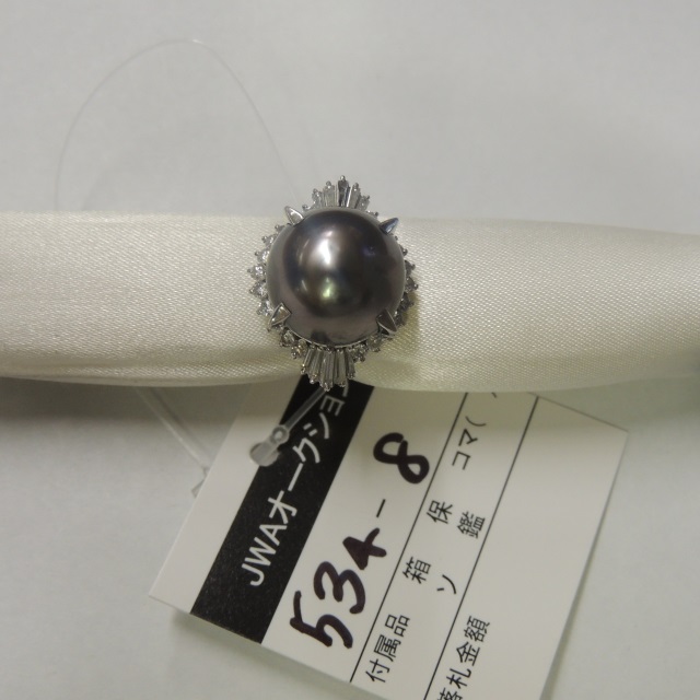 リング ブラックパール 10.5mm Pt900 8.10g 石目:D0.41