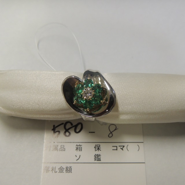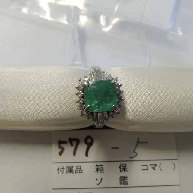 リング エメラルド ダイヤ Pt900 8.00g 中ソ 石目:E3.02 D0.50
