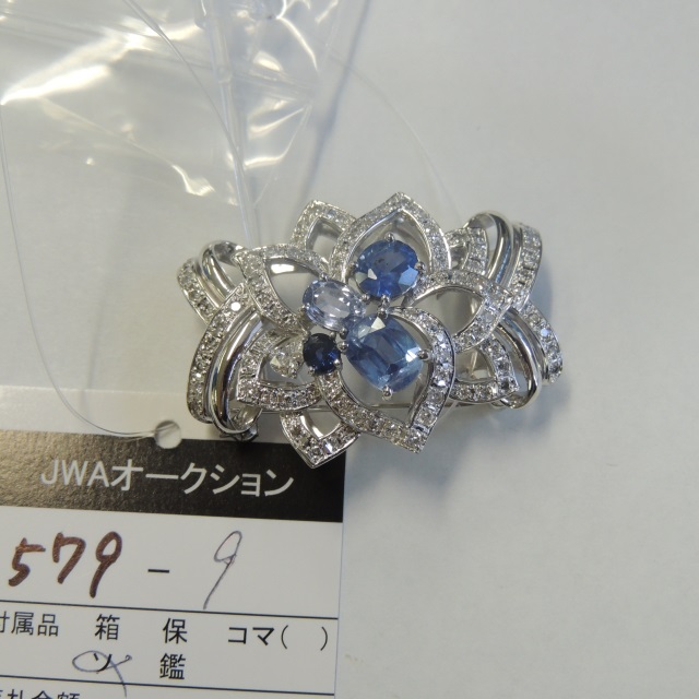 ブローチ サファイヤ ダイヤ Pt900 24.50g GRJソ 石目:S6.37 D1.05