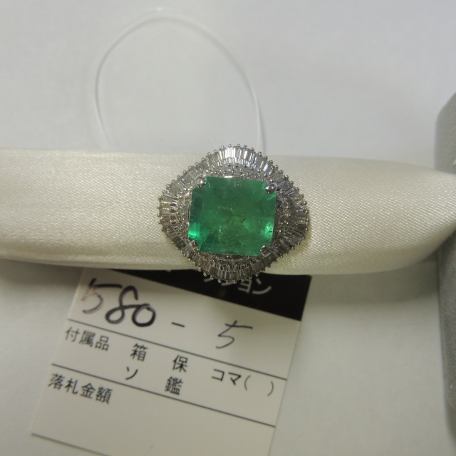 リング エメラルド Pt900 13.00g 石目:7.00 D2.13