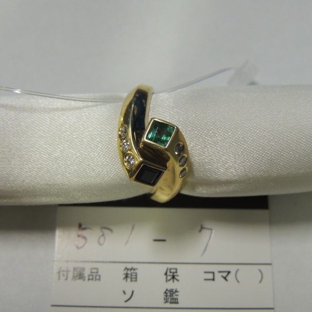リング エメラルド サファイア K18 6.10g 石目:E0.23 S0.33 D0.13