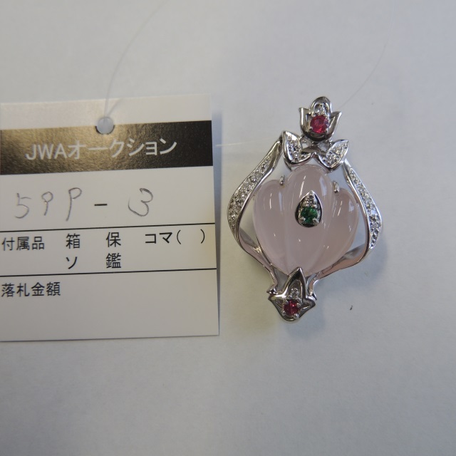 ブローチ C.ハール ローズクォーツ Pt900/K14WG 14.20g 石目:Q19.00 R0.21 E0.05 D0.17