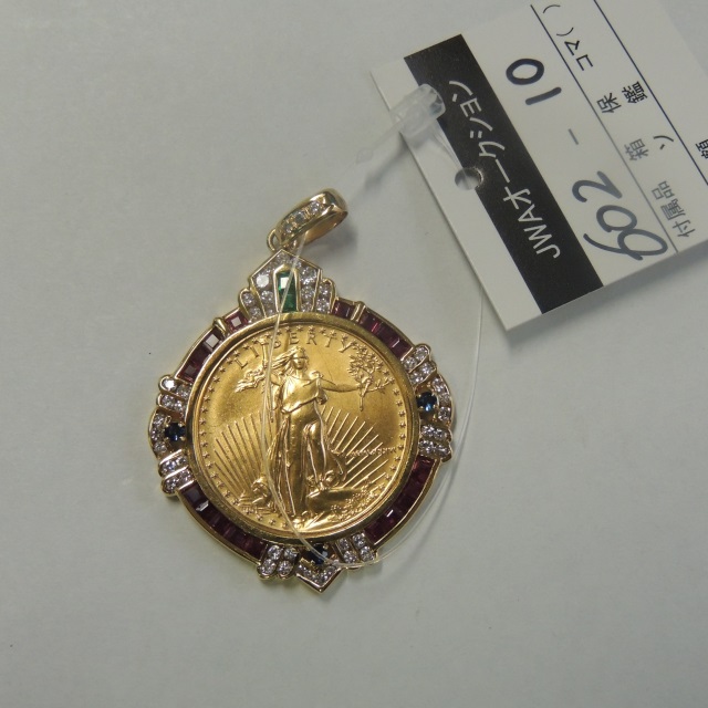 ペントップ サファイア ルビー エメラルド ダイヤ イーグルコイン1/2オンス K18/K22 27.90g 石目:D1.18 R1.79 S0.26 E0.18