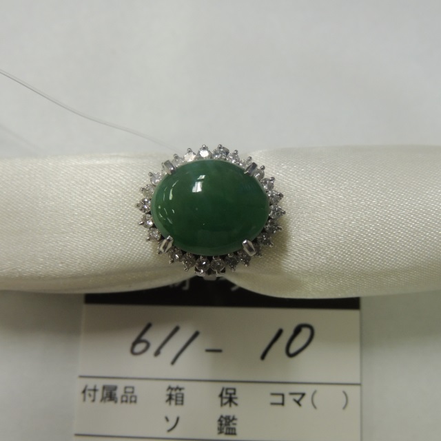 リング ヒスイ ダイヤ Pt900 9.50g 鑑 石目:FD0.35