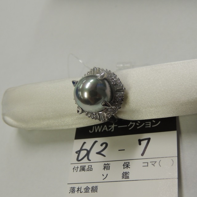 リング グレーパール ダイヤ 12.5mm Pt900 13.50g 石目:D0.39 D0.35