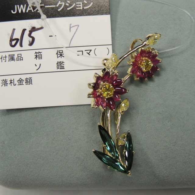 ブローチ ルビー トルマリン K18 8.20g 石目:R2.96 TLP1.21 TL2.17