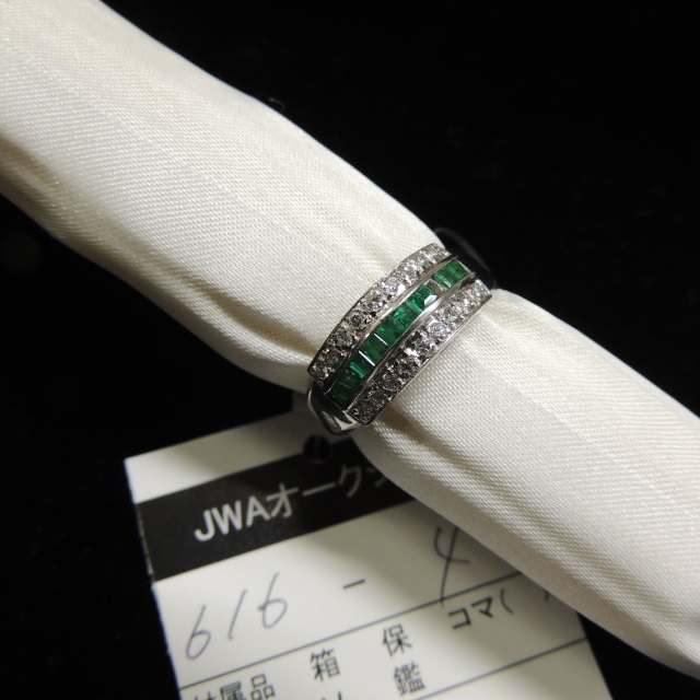 リング エメラルド ダイヤ Pt900 6.00g GRJソ 石目:E0.50 D0.46