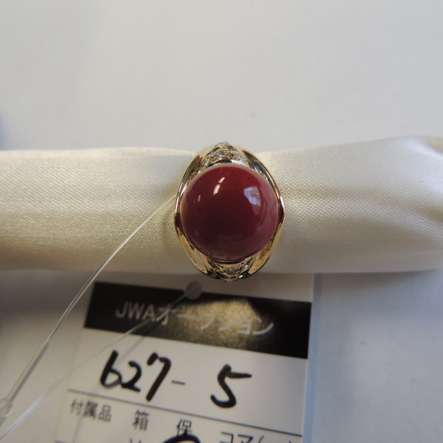 リング サンゴ 11.1mm エメラルド ダイヤ K18 8.50g 鑑