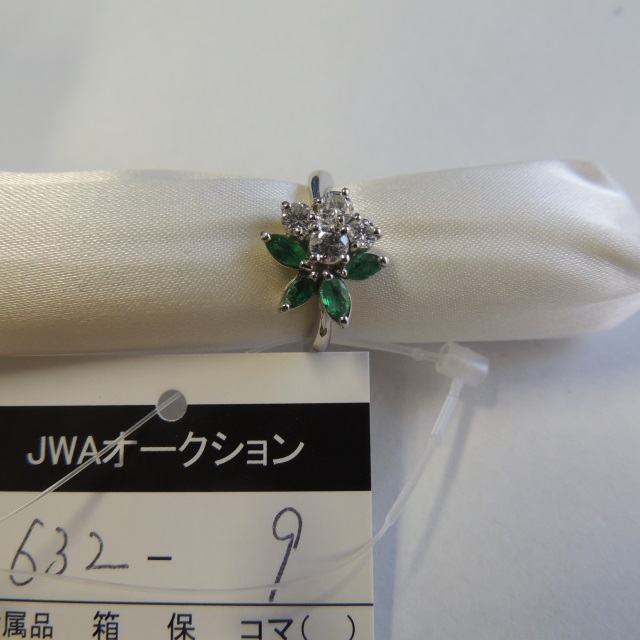 リング エメラルド ダイヤ Pt900 5.70g 鑑 石目:E0.39 0.51