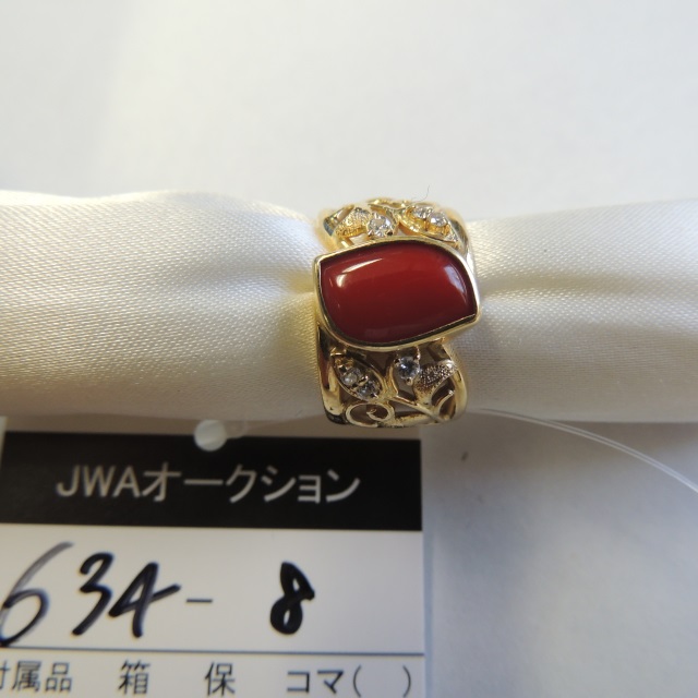 リング 赤サンゴ ダイヤ K18 6.60g