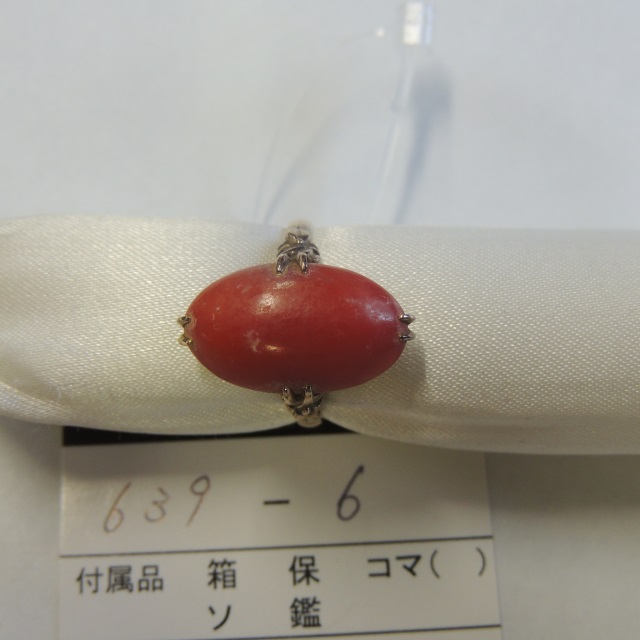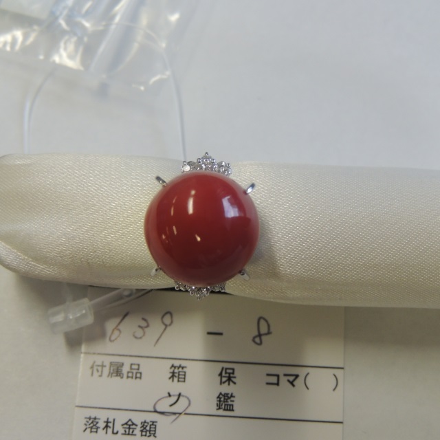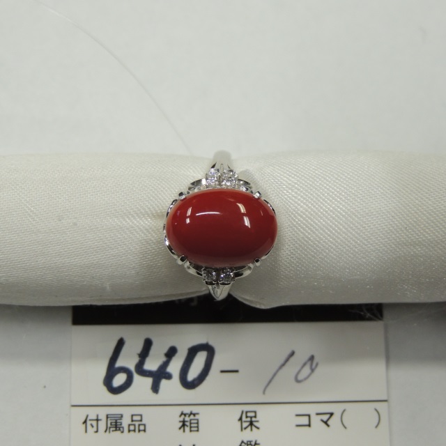 リング サンゴ ダイヤ P14.4mm Pt900 11.40g ソ 石目:D0.17