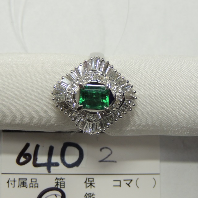 リング エメラルド ダイヤ Pt900 9.90g GRJソ 石目:E0.67 D0.95