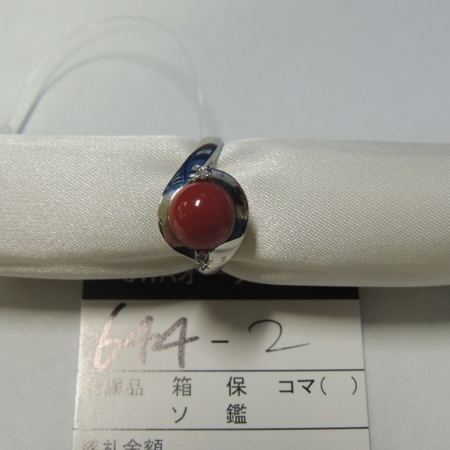 リング 赤サンゴ ダイヤ Pt900 4.77g 石目:0.03